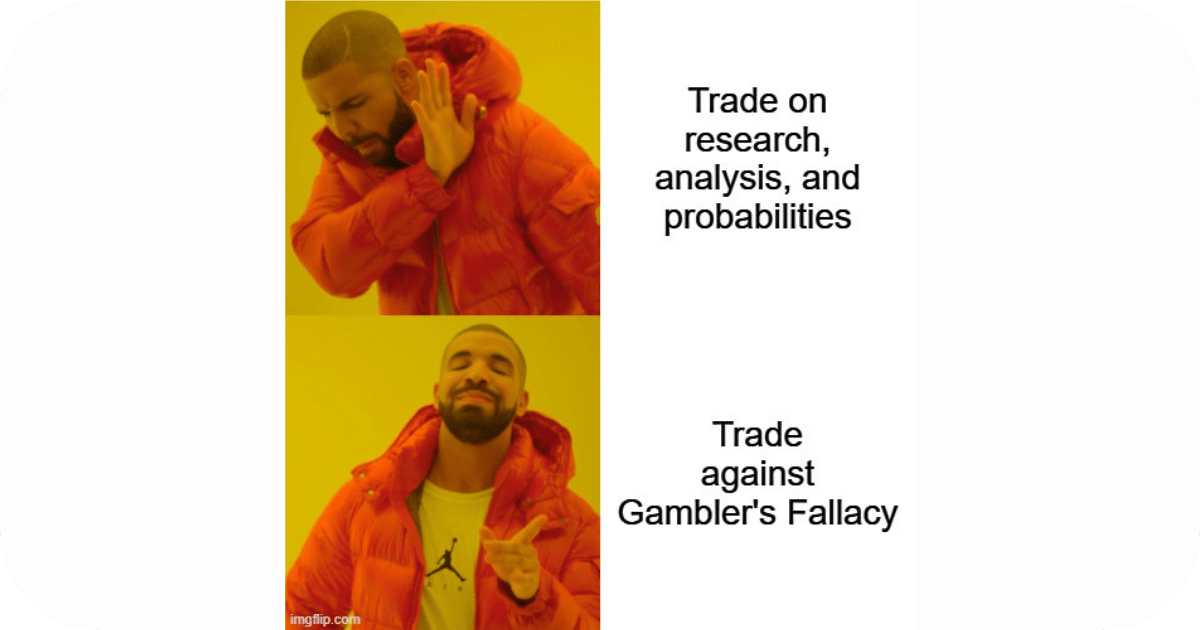 Gambler’s Fallacy is the mistaken belief that the outcome of a one-off event is influenced by previous results.